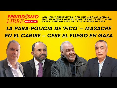 En esta emisión, Luis Alfonso Mena aborda tres hechos clave. Con Weimar Guarín, defensor de DD.HH., hablaron sobre la agresión a una manifestación de solidaridad con Palestina por parte de un grupo para-policial creado por el alcalde de Medellín, Federico Gutiérrez. ¿Quién investigará a las hordas fascistas de ‘Fico’? Con Juan Carlos Tanus, desde Caracas, analizaron el escalamiento de la agresión de Donald Trump en el Caribe, tras el ataque impune a una embarcación colombiana. Y con Yamil Kasem, desde Amán, Jordania, hablaron del cese el fuego alcanzado para la martirizada Gaza.